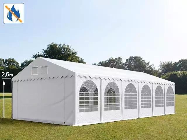 Professzionális extra erős rendezvénysátor 6x12 m, ponyva tűzálló PVC oldalmagasság + 2,6m erősített szerkezet fehér