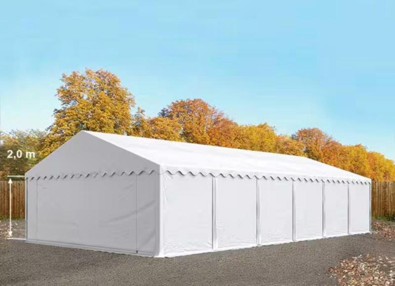 Tároló sátor ideális hosszabb, szezonális használatra. Az egyedi ponyvaelemeknek köszönhetően nagyfokú stabilitást kínál. A sátor megerősített oszlopokkal rendelkezik, rögzítő padlóvázzal és további tetőerősítésekkel. Az erős, kb. 500 g / m² PVC ponyva UV és 100% vízálló a hegesztett varratoknak köszönhetően. A magas 80+ fényvédő tényező ideálisan védi a tárolt árut az UV sugárzástól.